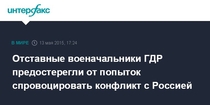Отставные военачальники ГДР предостерегли от попыток спровоцировать конфликт с Россией