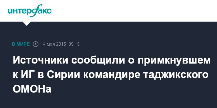 Москва. 14 мая. INTERFAX.RU - Командир ОМОНа МВД Таджикистана полковник Гулмурод Халимов покинул республику и воюет в рядах "Исламского государства" (ИГ) в Сирии, заявили в четверг "Интерфаксу" источники в правоохранительных органах страны.