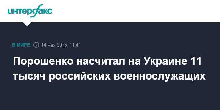 Москва. 14 мая. INTERFAX.RU - Президент Украины Петр Порошенко заявил о присутствии на территории страны 11 тыс. российских военнослужащих.