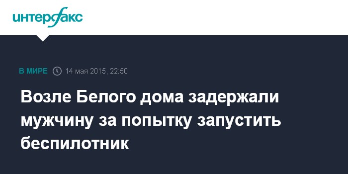 Москва. 14 мая. INTERFAX.RU - Сотрудники правоохранительных органов США задержали мужчину, который пытался запустить беспилотник возле ограды Белого дома в Вашингтоне, сообщило в четверг агентство Associated Press.