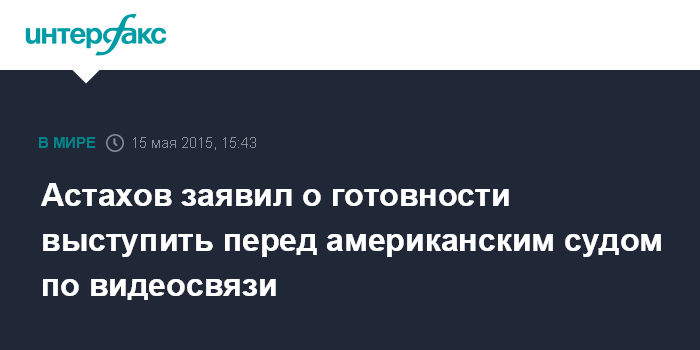 Москва. 15 мая. INTERFAX.RU - Уполномоченный при президенте РФ по правам ребенка Павел Астахов, вызванный на 18 мая в суд американского штата Джорджия в качестве свидетеля обвинения по делу против Майкла Гризмора, сообщил, что готов выступить заочно в режиме видеоконференции.