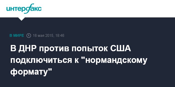 Москва. 16 мая. INTERFAX.RU - В самопровозглашенной Донецкой народной республике считают попытку США стать частью "нормандского формата" открытым признанием своего влияния на процессы в Украине.