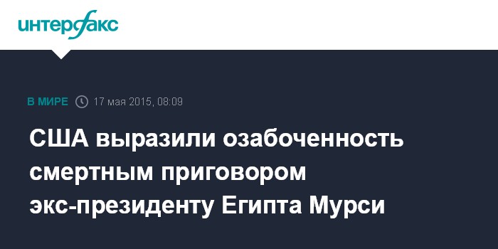 Москва. 17 мая. INTERFAX.RU - Соединенные Штаты заявили об озабоченности смертным приговором, вынесенным египетским судом бывшему президенту Египта Мухаммеду Мурси.