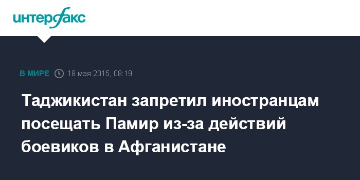 Москва. 18 мая. INTERFAX.RU - Таджикистан приостановил выдачу специальных разрешений для иностранцев на посещение популярной у альпинистов всего мира Горно-Бадахшанской автономной области (ГБАО), где расположены несколько гор-семитысячников, сообщил в понедельник комитет по делам молодежи, спорта и туризма при правительстве республики.