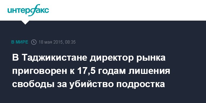 В Таджикистане директор рынка приговорен к 17,5 годам лишения свободы за убийство подростка