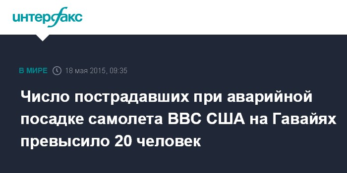 Число пострадавших при аварийной посадке самолета ВВС США на Гавайях превысило 20 человек