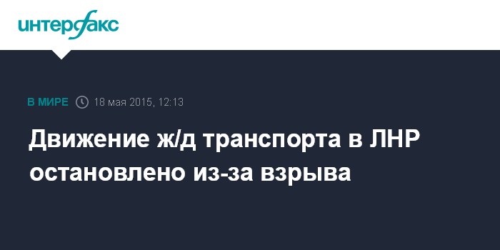 Москва. 18 мая. INTERFAX.RU - Движение железнодорожного транспорта на территорию самопровозглашенной Луганской народной республики прекращено в результате взрыва на 47 км перегона Сентяновка - Шипилов Попаснянского района.