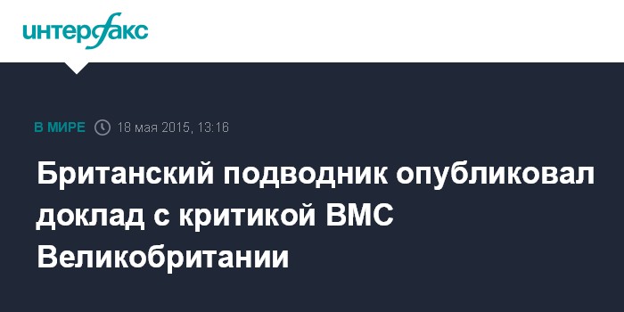 Москва. 18 мая. INTERFAX.RU - Моряк Королевского военно-морского флота Великобритании Уильям Макнилли обнародовал собственный доклад, согласно которому британский флот, в том числе подводные лодки, несущие баллистические ракеты, имеет серьезные проблемы с безопасностью, сообщает "Би-би-си".