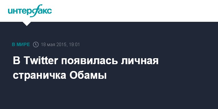 Москва. 18 мая. INTERFAX.RU - Президент США Барак Обама завел личную страничку @POTUS в популярной сети микроблогов Twitter, сообщил в понедельник Белый дом.