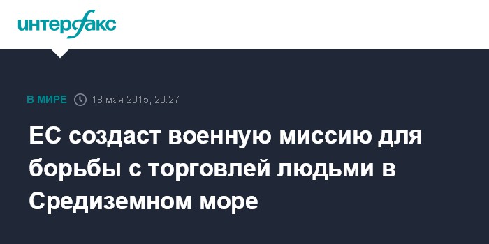 Москва. 18 мая. INTERFAX.RU - Министры обороны и главы МИД стран Евросоюза на Совете ЕС в понедельник приняли решение о проведении военной миссии ЕС EUNAVFOR Med, целью которой является борьба с контрабандистами и торговцами людьми в Средиземном море, говорится в постановлении по итогам заседания Совета.