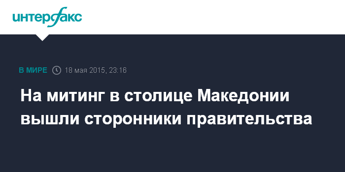 Москва. 18 мая. INTERFAX.RU - Митинг сторонников македонских властей начался в Скопье, сообщает в понедельник сербский телерадиоканал РТС.