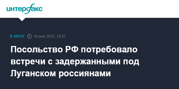 Москва. 19 мая. INTERFAX.RU - Российское посольство в Киеве потребовало встречи консульских работников с гражданами РФ Александром Александровым и Евгением Ерофеевым, ранеными и захваченными сотрудниками украинских силовых структур под Луганском.