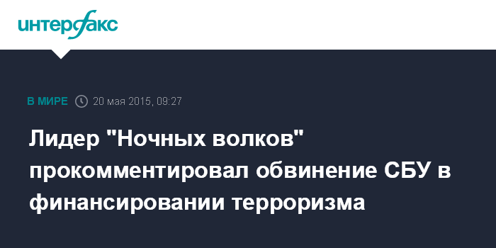 Москва. 20 мая. INTERFAX.RU - Руководитель российского байк-клуба "Ночные волки" Александр Залдостанов ("Хирург") считает смехотворным обвинение в финансировании терроризма, выдвинутое против него Службой безопасности Украины (СБУ).