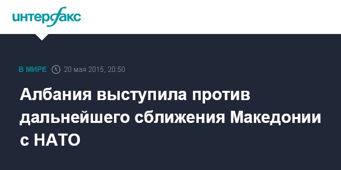 Москва. 20 мая. INTERFAX.RU - Албания выступит против планов Македонии на получение статуса кандидата на вступление в НАТО, заявил в среду глава албанского правительства Эди Рама.