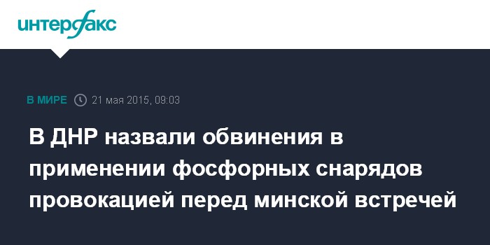 Москва. 21 мая. INTERFAX.RU - В военном руководстве ДНР отвергают обвинение Киева в применении фосфорных боеприпасов и считают его провокационным.