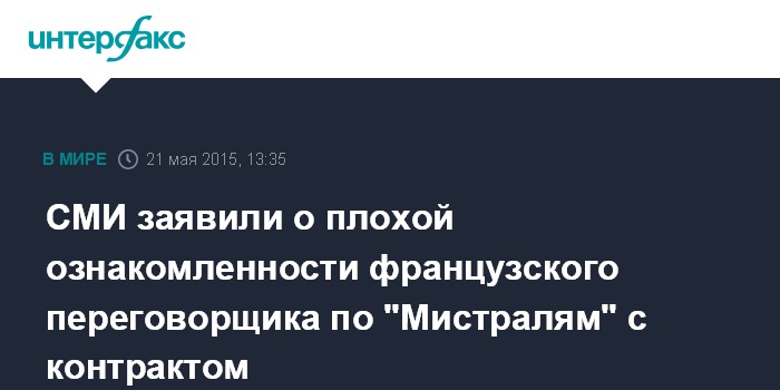 "Во время его первой встречи с представителями российской стороны 30 марта последние быстро заметили, что их французский собеседник плохо знает детали контракта. И это - не его (Готье - ИФ) вина: Елисейский дворец, судя по всему, исключил из дискуссий всех, кто участвовал в первых переговорах в 2011 году", - говорится в публикации.