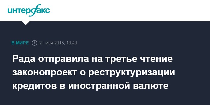 Москва. 21 мая. INTERFAX.RU - Верховная Рада поддержала во втором чтении проект закона о реструктуризации обязательств по кредитам в иностранной валюте.