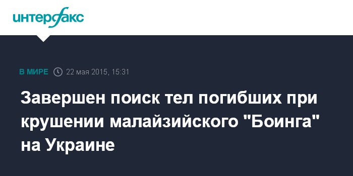 Москва. 22 мая. INTERFAX.RU - Вице-премьер Украины Геннадий Зубко заявил об окончании операции по поиску тел погибших в результате катастрофы самолета авиакомпании Malaysia Airlines, произошедшей в июле 2014 года в Донецкой области.