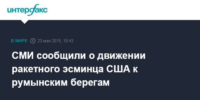 ВМС Румынии накануне заявили, что американский эсминец уже в воскресенье примет участие в совместных с румынскими кораблями учениях Trident Poseidon 2015, которые продлятся до 28 мая. Учения будут проходить в румынских территориальных водах, а также в международных водах Черного моря.