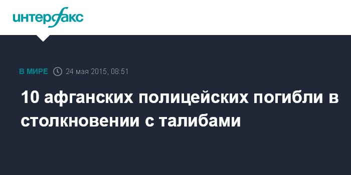 Москва. 24 мая. INTERFAX.RU - По меньшей мене 10 сотрудников полиции Афганистана погибли в столкновении с боевиками экстремистской группировки Талибан на юге страны, сообщило в воскресенье агентство Associated Press со ссылкой на местные власти.