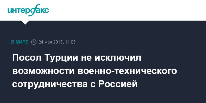 Москва. 24 мая. INTERFAX.RU - Турция готова сотрудничать с Россией по различным аспектам, развивать отношения можно и в военно-технической сфере, заявил в интервью "Интерфаксу" посол Турции в Москве Умит Ярдым.