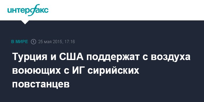 Москва. 25 мая. INTERFAX.RU - Турция и США достигли принципиальной договоренности о защите с воздуха сирийских повстанцев, воюющих с боевиками "Исламского государства" (ИГ), сообщило из Анкары в понедельник информационное агентство АP со ссылкой на главу турецкого МИД Мевлюта Чавушоглу.