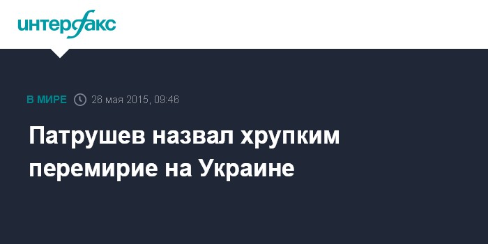 Москва. 26 мая. INTERFAX.RU - Секретарь Совета безопасности РФ Николай Патрушев заявил, что перемирие, достигнутое в конфликте на востоке Украине, является хрупким.