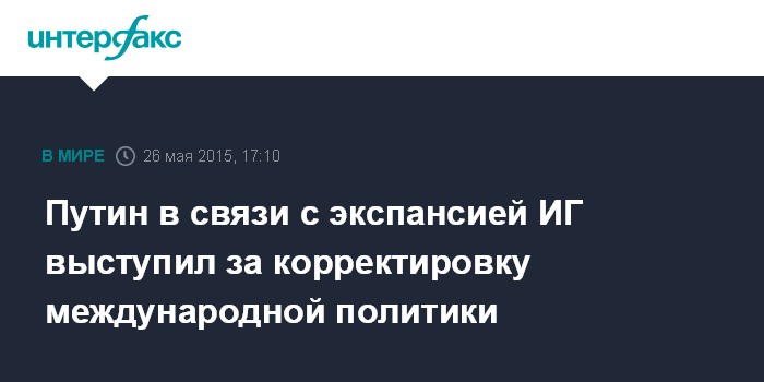 Москва. 26 мая. INTERFAX.RU – В странах, где действует "ИГИЛ", не было никакого терроризма, пока не произошло вмешательство извне без санкций Совбеза ООН, заявил президент РФ Владимир Путин. Он считает, что последствия тяжелые и необходима корректировка политики на международной арене.
