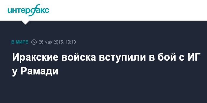 Москва. 26 мая. INTERFAX.RU - Иракские военные и поддерживающие их ополченцы во вторник ведут бои к югу и к западу от города Рамади - столицы провинции Анбар, захваченной группировкой "Исламское государство" (ИГ), сообщает BBC.