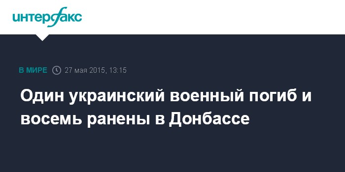 Москва. 27 мая. INTERFAX.RU - За минувшие сутки в зоне проведения силовой операции на юго-востоке Украины погиб украинский военнослужащий, сообщил представитель администрации президента по военным вопросам Александр Мотузяник.