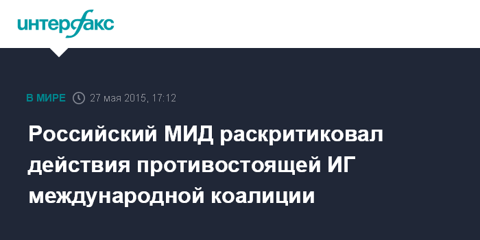 Российский МИД раскритиковал действия противостоящей ИГ международной коалиции