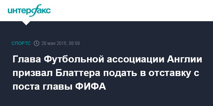 Глава Футбольной ассоциации Англии призвал Блаттера подать в отставку с поста главы ФИФА