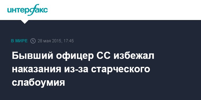 Бывший офицер СС избежал наказания из-за старческого слабоумия