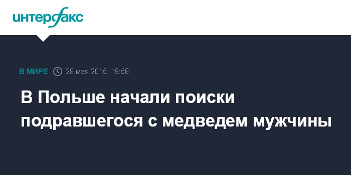 Москва. 28 мая. INTERFAX.RU - Польские власти начали поиски мужчины, раненного после схватки с медведем в зоопарке Варшавы, сообщает в четверг агентство Associated Press.