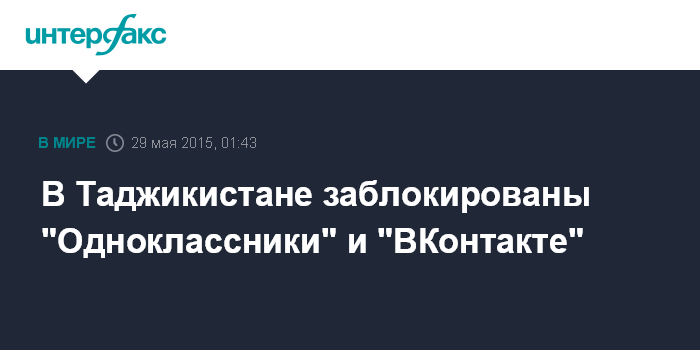 "Мы получили от Службы связи распоряжение закрыть доступ к сайтам odnoklassniki.ru и vk.com, а также к сайту (независимого частного таджикского информагентства) Азия-Плюс news.tj, что нами и было сделано", - сообщил в пятницу "Интерфаксу" представитель руководства одного из интернет-провайдеров на условиях анонимности.