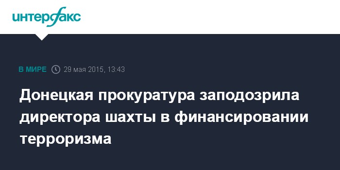 Москва. 29 мая. INTERFAX.RU - Прокуратура Донецкой области проводит досудебное расследование по факту возможного финансирование террористической организации, которой прокуратура считает Донецкую народную республику, за счет реализации угольной продукции.