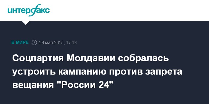 27 мая на заседании молдавского Координационного совета по телерадиовещанию было принято решение приостановить ретрансляцию канала "Россия-24". В опубликованном в пятницу заявлении ПСРМ в связи с этим говорится, что партия выступает "категорически против тоталитарных, антидемократических законов; заявляет о готовности организовать протестную кампанию в рамках закона, направленную на защиту свободы слова в Молдавии; готова оказать гражданам Молдавии максимальное содействие в реализации их права на получение информации".
