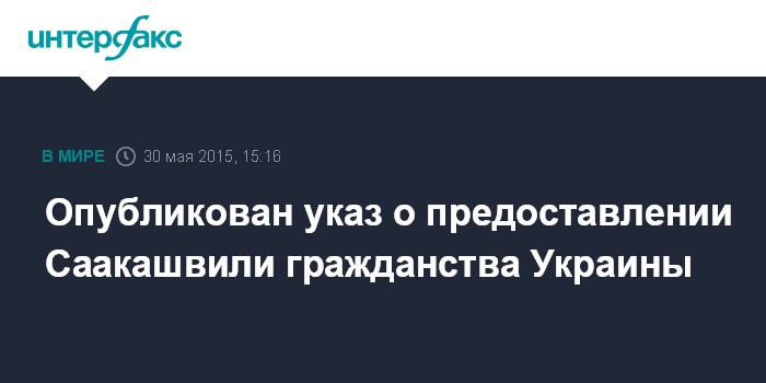 Москва. 30 мая. INTERFAX.RU - Президент Украины Петр Порошенко подписал указ о предоставлении гражданства Украины экс-президенту Грузии Михаилу Саакашвили.