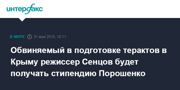 Обвиняемый в подготовке терактов в Крыму режиссер Сенцов будет получать стипендию Порошенко