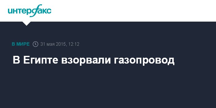 Москва. 31 мая. INTERFAX.RU - Взрыв на газопроводе в районе административного центра Северного Синая городе Эль-Ариша в Египте произошел в воскресенье, сообщили журналистам местные силы безопасности.