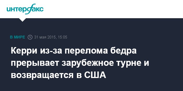 Керри из-за перелома бедра прерывает зарубежное турне и возвращается в США