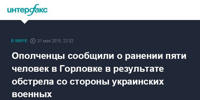 Москва. 31 мая. INTERFAX.RU - Украинские военные в Донбассе нанесли удар по жилым кварталам Горловки, пять мирных жителей получили ранения.