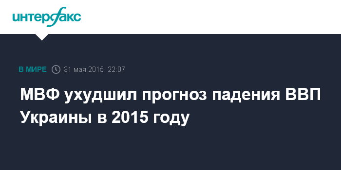 Москва. 31 мая. INTERFAX.RU - Международный валютный фонд (МВФ) ожидает падения экономики Украины в 2015 году на 9%, сообщается в пресс-релизе миссии фонда.