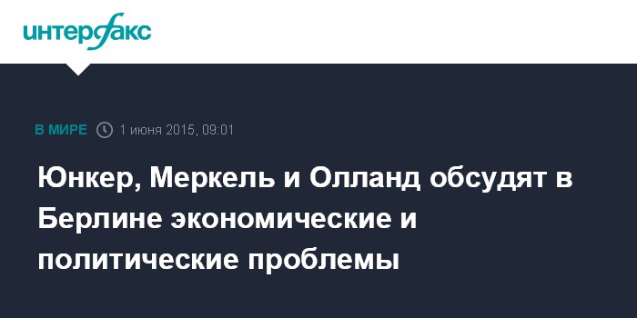 Юнкер, Меркель и Олланд обсудят в Берлине экономические и политические проблемы