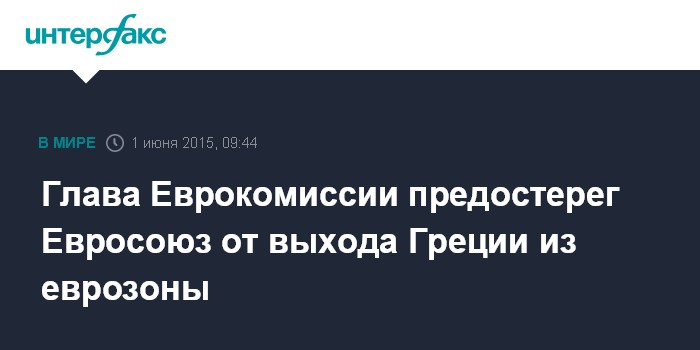 Москва. 1 июня. INTERFAX.RU - Президент Европейской комиссии Жан-Клод Юнкер предостерег Европейский союз от выхода Греции из еврозоны.