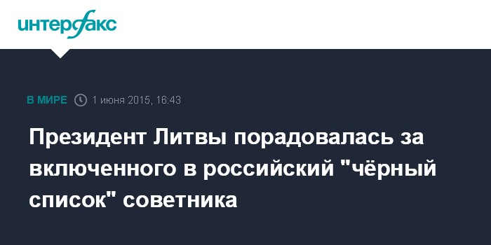 Москва. 1 июня. INTERFAX.RU - Президент Литвы Даля Грибаускайте заявила, что включение её советника по внешнеполитическим вопросам Йовиты Нялюпшене в российский "черный список" вызывает у нее чувство гордости.