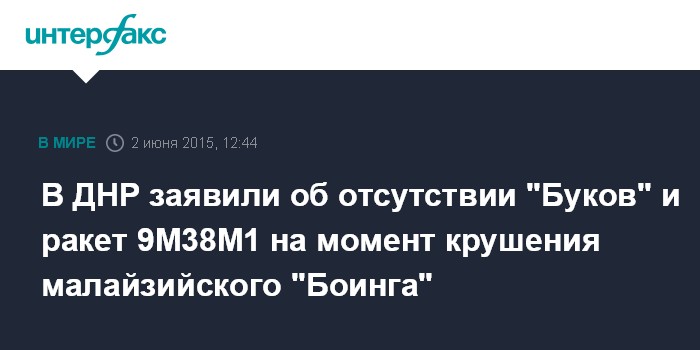 "У нас таких установок типа "Бук-М1" и, соответственно, ракет (9М38М1) на тот момент вообще не было. Мы такой техникой не располагали", - заявил во вторник "Интерфаксу" замминистра обороны ДНР Эдуард Басурин.