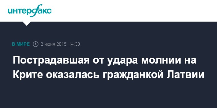 "Ранее сообщалось, что девушка - россиянка, но оказалась гражданкой Латвии 1985 года рождения с русскими именем и фамилией. Сразу после удара молнии у нее была остановка сердца, греческие врачи провели реанимацию. Сейчас пострадавшая по-прежнему в тяжелом состоянии", - рассказала она.