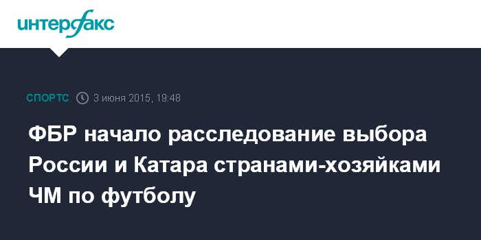 Москва. 3 июня. INTERFAX.RU - ФБР проводит расследование обстоятельств предоставления права проведения чемпионатов мира по футболу России и Катару, сообщает Reuters со ссылкой на сотрудника ФБР на условиях анонимности.