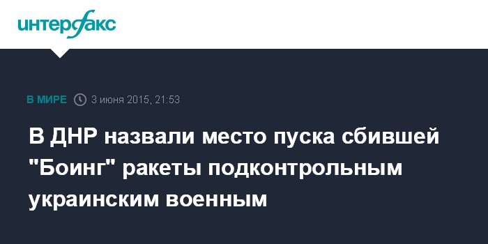 Москва. 3 июня. INTERFAX.RU - Населенный пункт Зарощинское, откуда, по версии российских экспертов, летом прошлого года был сбит малайзийский "Боинг", в момент трагедии находился под контролем украинских силовиков, заявил в среду представитель Минобороны самопровозглашенной ДНР Эдуард Басурин.
